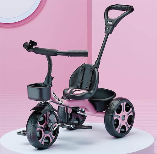 Kidsmate Junior Tricycle for Kids with Parental Control | Cycle for Kids 1-4 Years | Baby Cycle | Bicycle with Storage Basket, Cushion Seat and Seat Belt Carrying Capacity 30 Kgs (Pink)